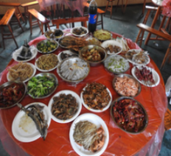 經過團隊的協同“作戰”,明確分工,不到兩個小時的時間,兩大桌美味佳肴不知不覺就已經呈現在大家面前。